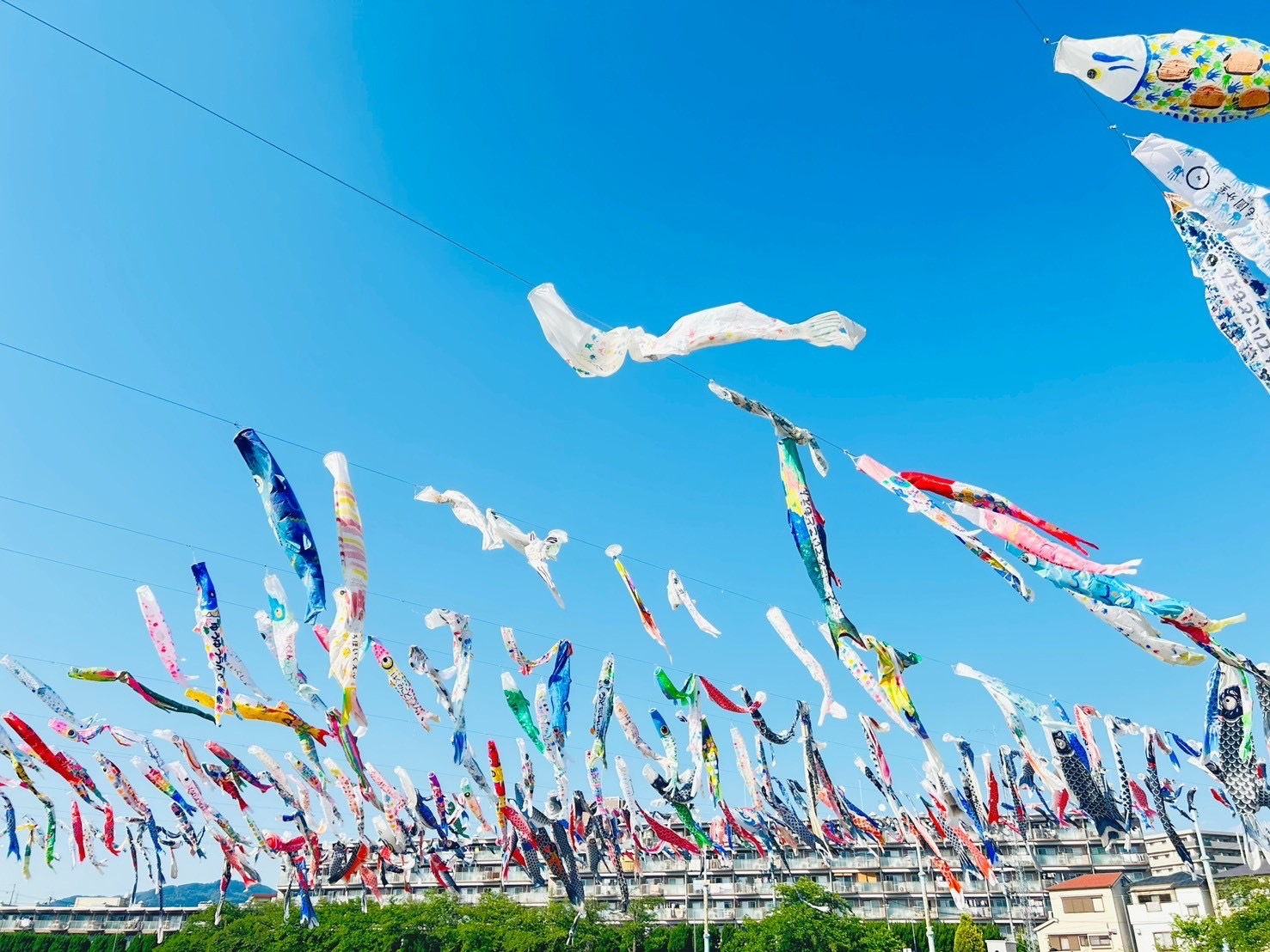 ゴールデンウイーク中、「コープ野村高槻」近くの川で、たくさんの鯉のぼりが泳いでいました!
