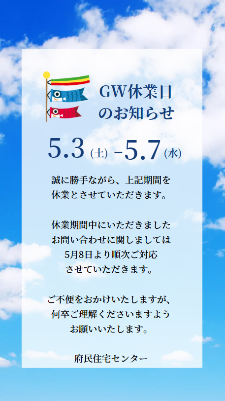 ゴールデンウィークのお知らせ